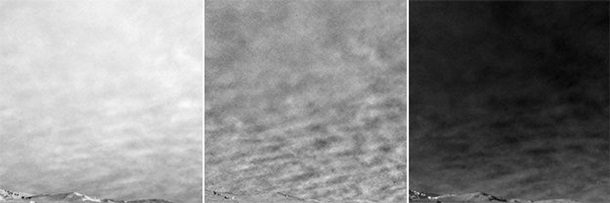 Время от времени в небе Марса можно рассмотреть нечеткие облака. На этих фото видно до сих пор не виданные образцы облаков, которые приобретают заметную зигзагообразную форму.