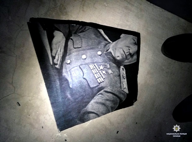 Разбитая мемориальная доска Жукову Нацполиция Украины