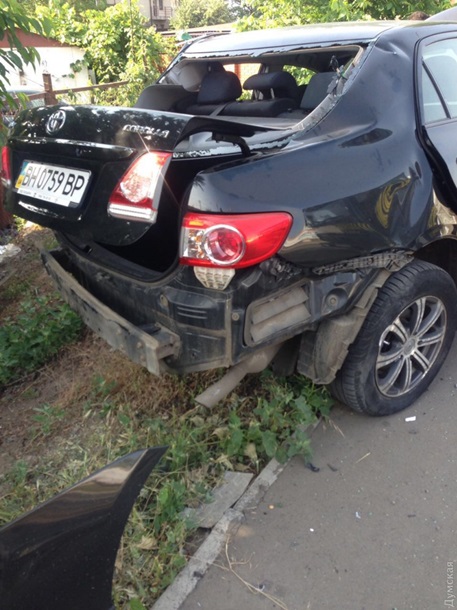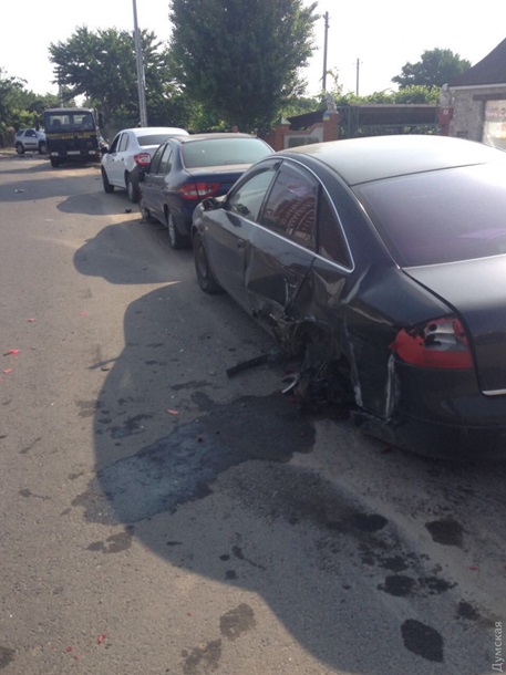 Один из поврежденных автомобилей Думская