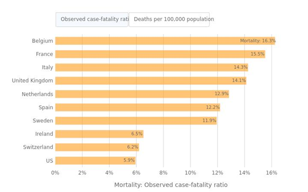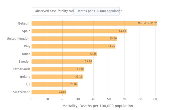 Число смертей на 100 подтвержденных случаев (летальность)