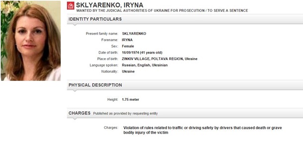 41-летняя Ирина Скляренко находится в международном розыске.
