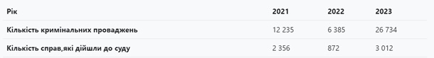 Отмечается, что в этом году до суда доходит только каждое девятое дело о мошенничестве. Так, за январь-апрель 2023 года на судебное разбирательство попали только 11% от общего количества зарегистрированных производств. Для сравнения: в соответствующий период 2022 года суд рассмотрел 14% дел по статье 190 УКУ, а в тот же период в 2021 году - 19%.