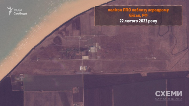 Программа Схемы обнародовала спутниковые снимки Planet Labs, на которых видны последствия пожара на территории полигона противовоздушной обороны, который находится западнее аэродрома в городе Ейск Краснодарского края РФ. Снимки в среду, 1 марта, Схемы выложили в Facebook.